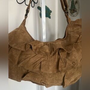 Vintage Lizden Suede Leather Ruffled Hobo Shoulder Bag