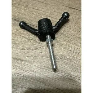 The product is a set of 2 black metal drawer pulls in the shape of wingnuts, with an extension length of 1-2 inches. They have a diameter of 2.5 inches and are made of metal. Fixings are supplied with the pull, and the style is described as a wingnut. The item length is 1 inch. Additionally, the listing includes a free one pull with the purchase of this set of 2.