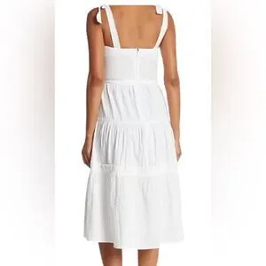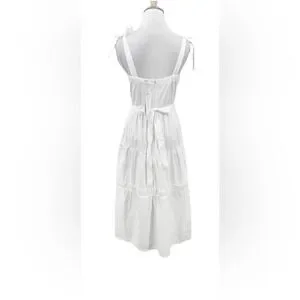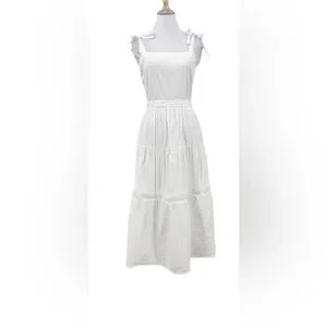 Topshop White Pintuck Tie Shoulder Tiered Hem Beachy SummerโCasual MidiโDress