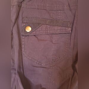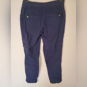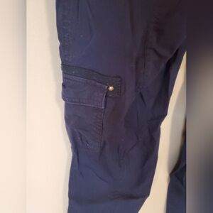 Chicos navy cargo pants with multiple pockets, elastic waist