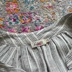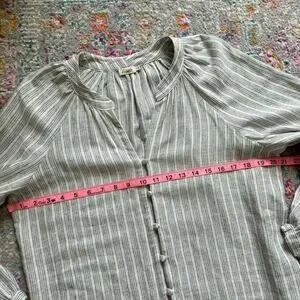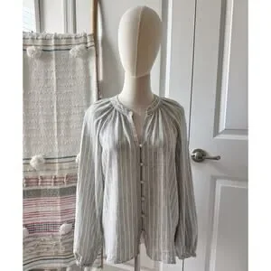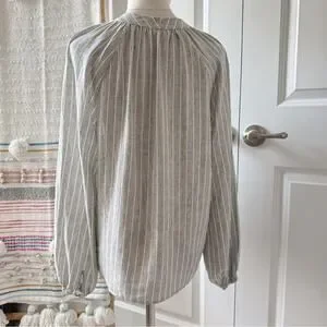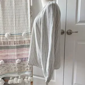 Faherty Naomi Grey Striped Long Sleeves Button Down Linen Blend Shirt Size Small