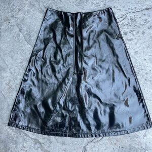 High Waisted Black Vinyl Midi Skirt black small