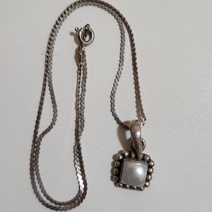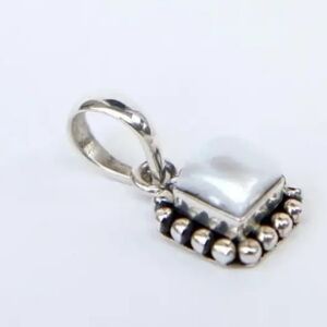 Elevate your collection with this authentic Silpada pendant necklace. This piece features a stunning square-cut Mother of Pearl cabochon with a soft, iridescent glow. The stone is set in a decorative 925 sterling silver frame accented with a signature oxidized beaded border, giving it a timeless, bohemian aesthetic.