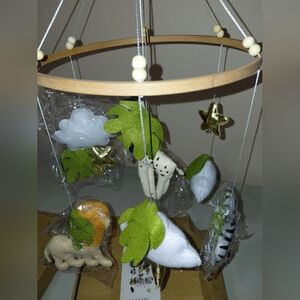 Adorable baby mobile featuring jungle animals, clouds, and stars. Perfect for a nursery.