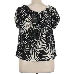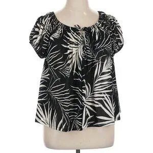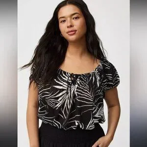NWT Torrid Black & White Palm Leaf Cap Sleeve Peasant Blouse Size 1X