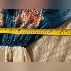 Just a STUNNER!!!! Elegant floral ombre dress with a blend of blue, pink and cream hues.