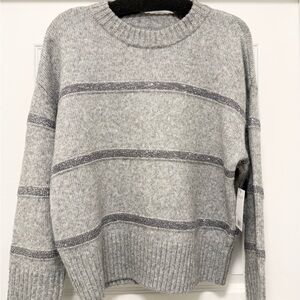 Sonoma Goods for Life Gray Sequin Striped Crewneck Sweater