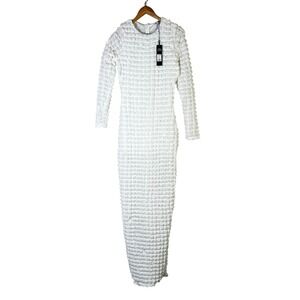 NWT Fashion Nova Bubble Textured Maxi Dress Womens L White Romantic Minimalist