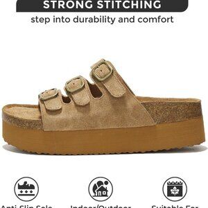 Genuine Suede Platform Sandals Women 3-Strap Wedges Memory Foam Non Slip