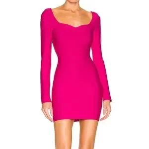 Bold hot pink mini dress. Long sleeves. Sweetheart neckline. Perfect for a night out.