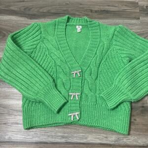 EUC River Island chunky knit boxy cardigan sweater bright green size XS