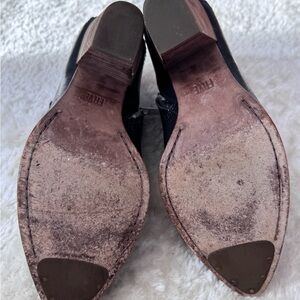 Frye Reed Scallop Shootie Black Leather Pointed Toe Heeled Booties Ankle Sz 8.5