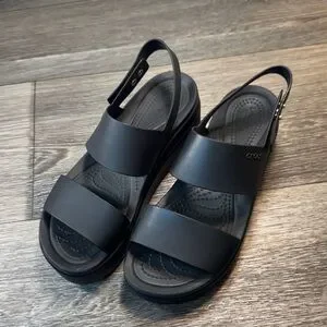 CROCS platform Black Women's Sandals size 8 (j148)