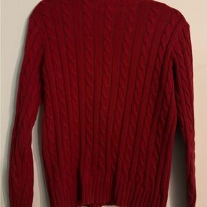 Chaps Boys Red Cable Knit Crew Neck Sweater Sz 12-14 Medium Blue Logo Cotton