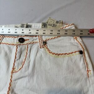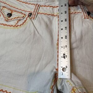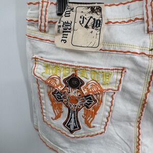 Raw Blue Shorts Womens 9/10 White Denim Embroidery Cross Royalty Wings Retro Y2K