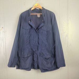 J Jill Jacket Womens XL Blue Windbreaker 4 Pocket Lightweight Utility Shiny