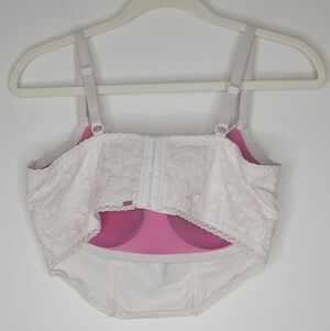 Chic lace bustier top with adjustable straps. Perfect for layering or wearing alone.