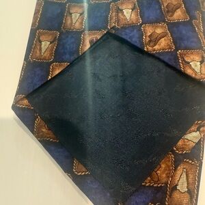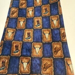 Elevate your style with this unique cowboy print tie. Featuring a striking blue and brown color scheme, this accessory adds a touch of western flair to any outfit.