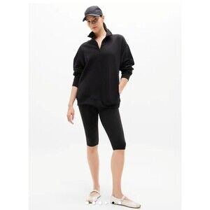 NWT ATHLETA EASY FOREVER FLEECE 1/4 ZIP SWEATSHIRT - Black- L - MSRP $99