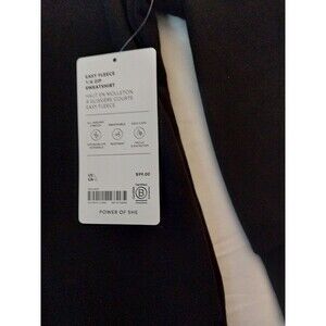The NWT Athleta Easy Forever Fleece 1/4 Zip Sweatshirt in Black is a versatile and comfortable option for women. Made from a blend of polyester, spandex, and cotton, this pullover sweatshirt features long sleeves and a relaxed fit, making it perfect for travel, activewear, or casual occasions. The 1/4 zip design and fleece fabric add a touch of warmth, while the solid black color and long sleeves make it a classic and stylish choice for all seasons. Easy to care for with its machine washable material, this sweatshirt from Athleta is a must-have for any wardrobe.