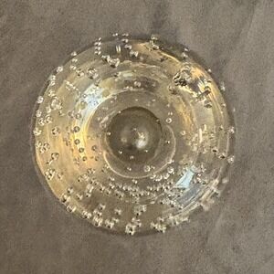 Vintage MCM Clear Art Glass Bud Vase Bullicante Bubble Base Murano Style 10"