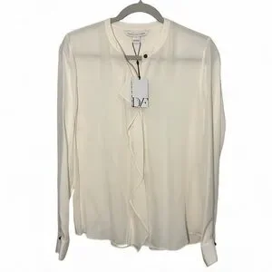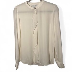 Diane Von Furstenberg Size 8 Silk Ivory Blouse with Ruffle