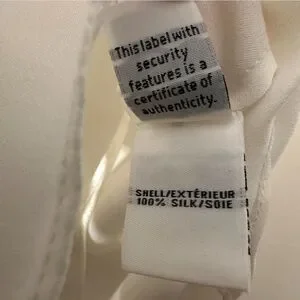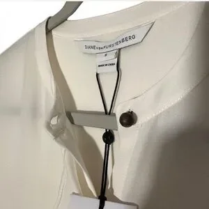 Chic ivory 100% silk blouse with a sleek button accent. Timeless style by Diane Von Furstenberg.