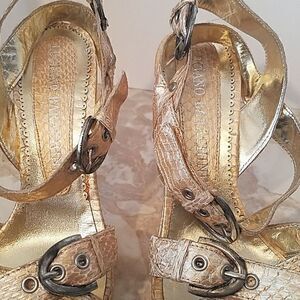 Luciano Barachini Gold Snakeskin Sandals Sz 40