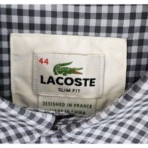 Up for sale is this really nice Lacoste Men's 44 XL Slim Fit Gingham Gray Plaid Long Sleeve Button Up Shirt