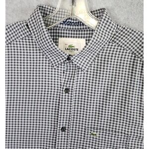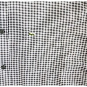 Lacoste Men's 44 XL Slim Fit Gingham Gray Plaid Long Sleeve Button Up Shirt