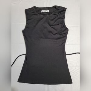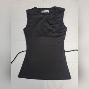 New Without Tags Princess Polly Uzo Top Black Lower Impact Size 0. Slim fitting, 90% reclaimed polyester 10% elastane, open back, back tie fastening, good stretch, fully lined, flattering fit.