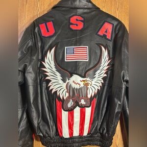 Genuine Leather Never Worn Bald Eagle USA American Flag Bomber Jacket