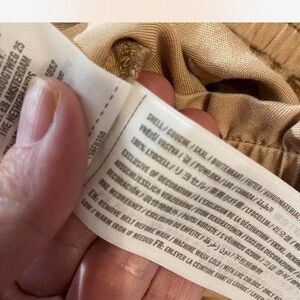 Comfortable tan joggers with elastic cuffs. Features a drawstring waist and side pockets. Perfect for casual outings.