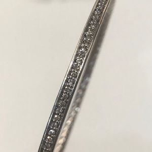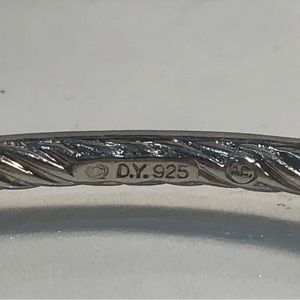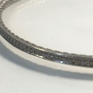 A Gorgeous preowned David Yurman pave diamond and sterling silver bangle bracelet. Gorgeous worn on its own or stacked with your other bracelets. It has the familiar David Yurman cable along the inside.