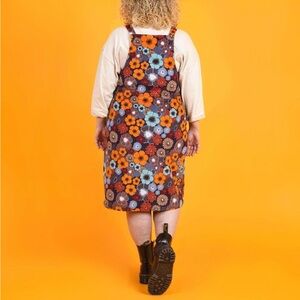 Lucy & Yak Freyja Corduroy Midi Pinafore Dress | 70s Dawn Floral Print | Size 22