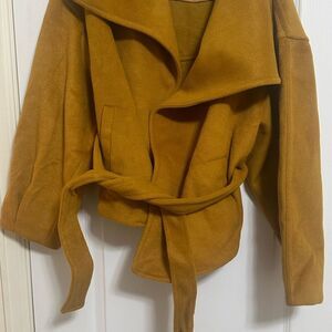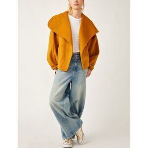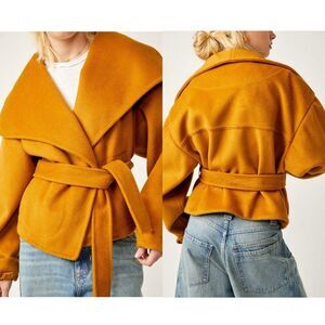 Free People Mina Jacket Oversized Waist Tie Wrap Front faux wool Yellow Orange M