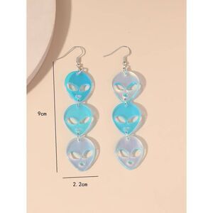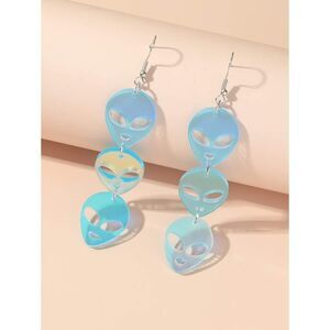 These out-of-this-world Iridescent Alien Dangle Drop Acrylic Earrings are sure to make a statement. With three cascading alien faces in a shimmering blue and iridescent finish, these earrings add a unique, extraterrestrial vibe to your look. Measuring approximately 9 cm in length and 2.2 cm wide, they are lightweight and comfortable to wear. The earring posts are made of durable, hypoallergenic stainless steel, ensuring both comfort and longevity. Perfect for those who want to showcase their playful side or stand out in any crowd!