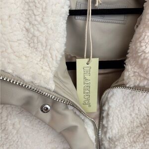 Chic and warm vest with sherpa details. Ideal for layering. Adds style to any outfit.