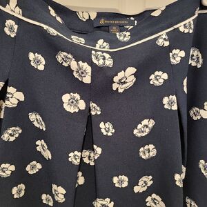 Brooks Brothers A line skirt with pleads, Navy with white floral, in a great condition, skirt is lined and has zipper for closure.