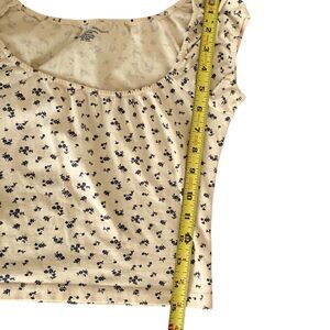 Brandy Melville Ivory Floral Puff Sleeve Crop Top Blouse One Size