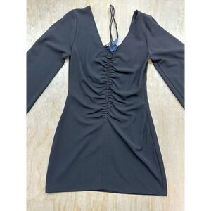 Women’s Zara Ruched Flare Sleeve Black Mini Dress Size M $49.90