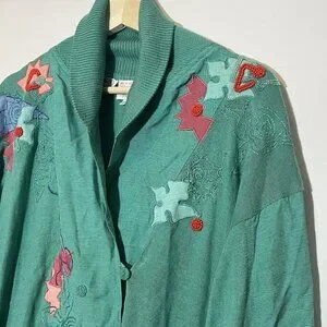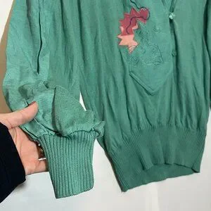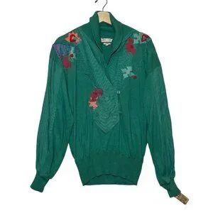 Vintage Marc D’alcy Sweater 80s Women’s Embroidery Embellished Size Small Green