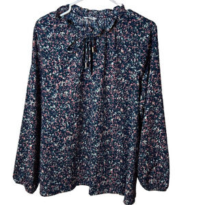 Pennington’s paint splatter long sleeve blouse tie front size 1x