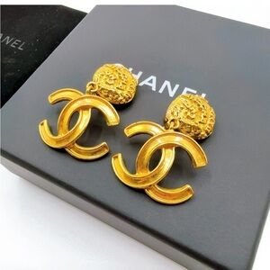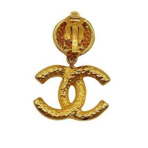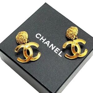 Chanel Vintage Gold Logomax Swing Earrings 95A GP