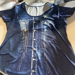 women's short-sleeve top & Bottom with a printed denim-style pattern 3XL $34