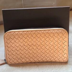 Bottega Veneta Tan Woven Leather Wallet