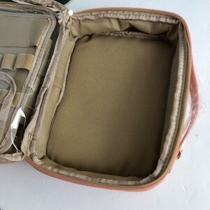 Brand new with tags from Amazon! Travel Makeup Bag, Large Capacity Cosmetic Bags for Women, Waterproof Portable Cosmetic Bags, PU Leather Makeup Organizer Bag with Makeup Brush Holder (Pink)-- more peachy pink.