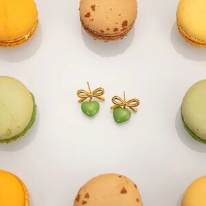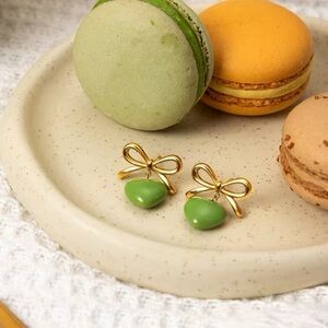18k Gold Plated Bowknot Green Heart Drip Oil Earrings