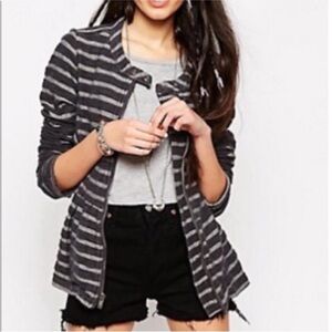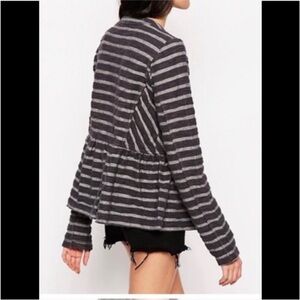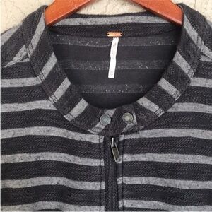 Free People Gray Striped Peplum Zip Jacket