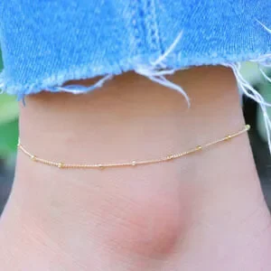 💛GORGEOUS ROUNDED BEADS ANKLET ESSENTIAL CHAIN SOLID GOLD BRACELET, ELDM22337
